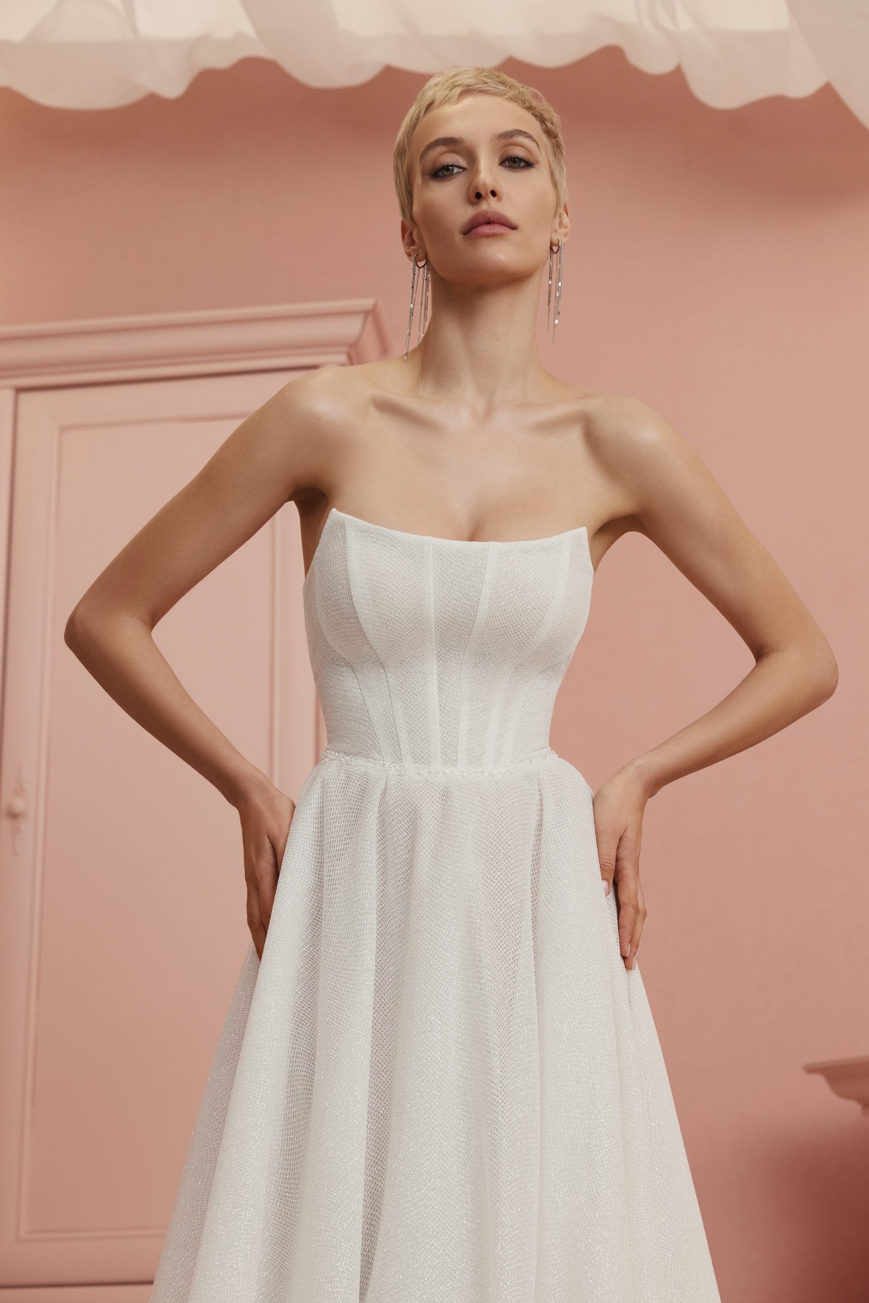 Die Marke Madioni kreiert raffinierte und einzigartige Brautkleider, die höchste Qualität und Liebe zum Detail vereinen. Bekannt für elegante Silhouetten und luxuriöse Materialien, bietet sie Modelle, die klassische Raffinesse mit modernen Akzenten verbinden.